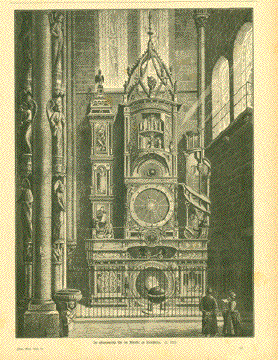 "Die astronomische Uhr im Muenster zu Strassburg" Wood engraving. Published in a German periodical. 1888 Paper is age toned. Reverse side has unrelated text print. Image: 31,7 x 23 cm (12.5 x 9") $ 70.00 (minus 40% discount = $ 42.00) Order Nr. ASTRONOMY257468 |