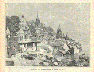 Benares from the Ganges Wood engraving ca 1875. Modern hand coloring. Backside is printed. 11 x 17.2 cm ( 4.3 x 6.7 ") $ 30.00 Order Nr. INDIA1315 |