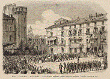 Inauguration de la troisième section du chemin de fer de la Haute-Italie. Vue de Saint-Maurice, une des stations principals.