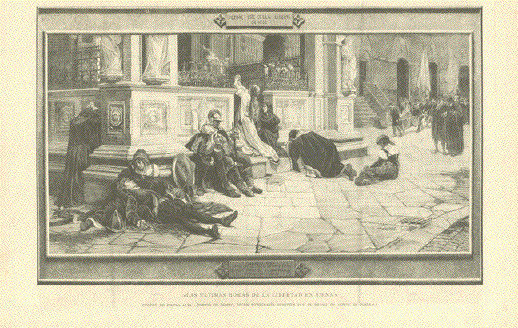 Wood engraving made after a painting by G. Schoenleber, 1891.