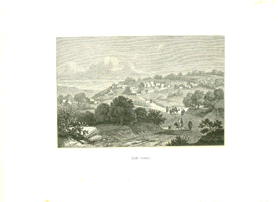 Jerusalem, Village of Siloam, etc. Wood engraving from an illustrated work ca 1875. Modern hand coloring. Reverse side is printed. 11 x 17.4 cm ( 4.3 x 6.8 ") $ 35.00 Order Nr. NEAREASTJERUSALEM1102 |