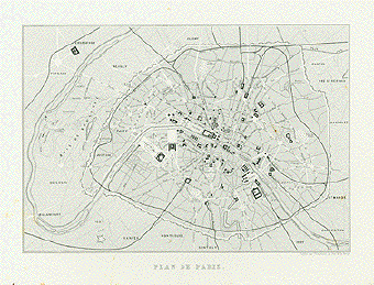 Plan de Paris Steel engraving published by Chamouin in Paris, ca 1850. A few light spots in margins. 16.5 x 24 cm ( 6.4 x 9.4 ") $ 55.00 Order Nr. PARISFRANCE0496 |