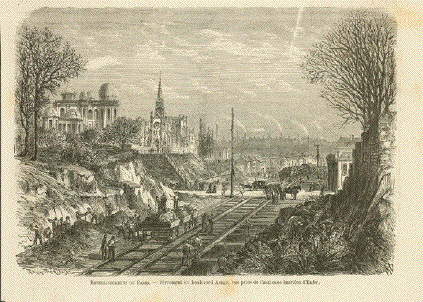 "Embellissements de Paris. - Percement du boulevard Arago, vue prise de la ancienne barriere d'Enfer" Wood engraving published 1868,