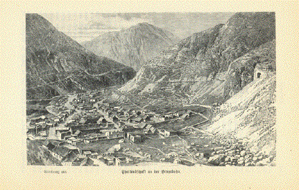 "Thallanschaft an der Oroyabahn" ( valley of the Oroya railroad ) Wood engraving published 1900. Reverse side is printed. 10.5 x 18 cm ( 4.1 x 7 ") $ 40.00 Order Nr. PERU245404 |