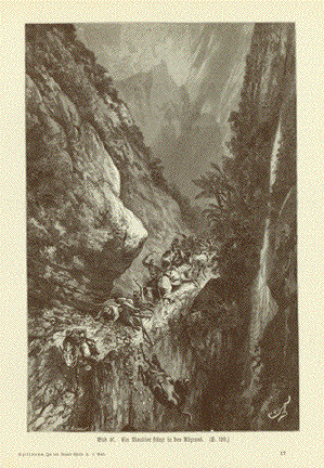 "Ein Maultier stuerzt in den Abgrund" 23.5 x 15.5 cm ( 9.2 x 6.1 ") Wood engravings published 1895. $ 30.00 minus 40% Discount = $ 18.00 Order Nr. PERU251501 |