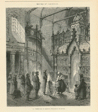 "La Ceremonie du Marriage Religieux en Russie" Wood engraving published 1874. Reverse side is printed. Overall light age tonng. 18.5 x 15.8 cm ( 7.2 x 6.2 ") $ 25.00 Order Nr. RUSSIA2405488 |