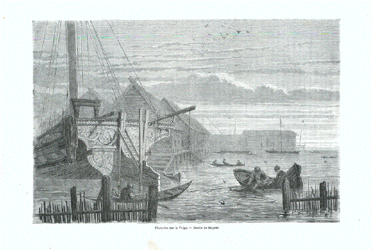 "Prams et radeaux sur la Dwina" Wood engravig by E. Moyet, 1872. Reverse side is printed. 16 x 23.5 cm ( 6.2 x 9.2 ") $ 25.00 minus 40% Discount = $ 15.00 Order Nr. RUSSIA240427 |