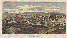 "Hasselfelde 1650." Lithograph ca 1850. Lower margin has been widened. 5.6 x 11.4 cm ( 2.2 x 4.5 ") $ 40.00 Order Nr. SACHSENANHALT 0462 |
