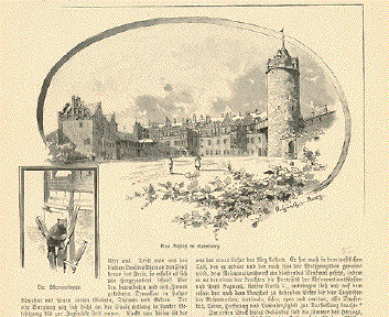 "Das Schloss in Bernberg" Wood engraving ca 1870. Reverse side is printed. In the lower left is an inset showing the Baerenzwinger ( bear cage) . 15 x 17.5 cm ( 5.9 x 6.8 '") $ 30.00 Order Nr. SACHSENANHALT238142 |
