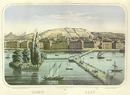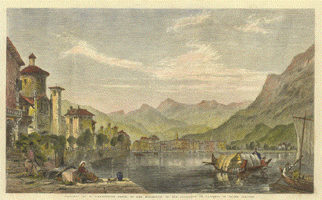 "At Lausanne" Lithograph published in London ca 1860. Fine hand coloring. The lithograph is printed on