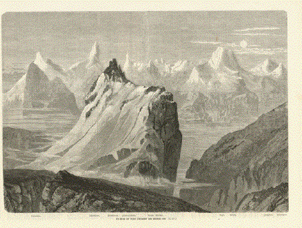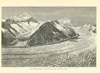 Transport von Felsbloecken auf dem Aargletscher. Wood engraving after Collumb ca 1875. Reverse side is printed. 8.5 x 10.6 cm ( 3.3 x 4.2 ") $ 20.00 Order Nr. CH1368 |