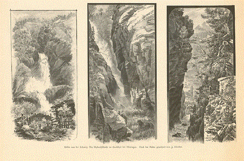 "Bilder aus der Schweiz: Die Alpbachschlucht im Haslithal bei Meiringen" Wood engravings drawn after