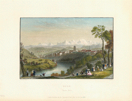 Bern Copper etching from Strahlheim's Wundermappe, 1837. 8.3 x 13.3 cm ( 3.3 x 5.2 ") $ 70.00 Order Nr. CH1207 |