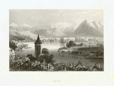 Schwytz vers le Miethen Steel engraving from a French source, ca 1850. 7.5 x 10.8 cm ( 2.9 x 4.2 ") $25.00 Order Nr. CH1282 |