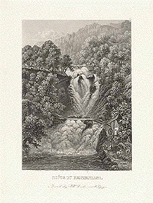 No Title. Falls on the Rhine near Schaffhausen. Fine aquatint printed in sepia ink ca 1840. Fine image. Some light spotting in margins. 17 x 20.5 cm ( 6.6 x 8 ") $ 90.00 Order Nr. CH241818 |