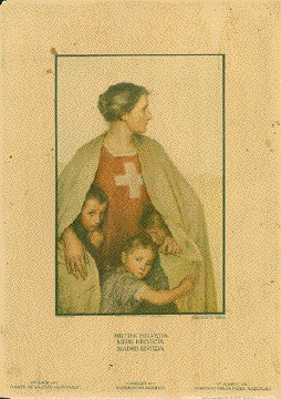 "Mutter Helvetia - Märe Helvetia - Madre Helvezia" Photographie nach dem Gemälde von Eugène Burnand (1850-1921) Mutter Helvetia breitet