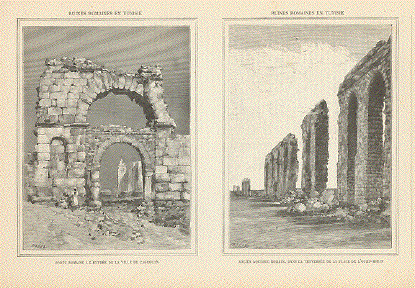 "Vue d'Utique (restauration)" Wood engraving by Therond and Daux, 1872. Reverse side is printed. 16 x 23.5 cm ( 6.2 x 9.2 ") $ 40.00 Order Nr. TUNISIA243269 |