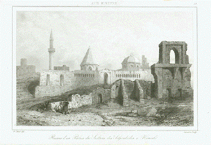 "Ruins d'un Palais des Sultans des Seljoukides a Konich" Steel engraving by Lemaitre after Texier, 1869. 9.5 x 15 cm ( 3.7 x 5.9") $ 20.00 Order Nr. TURKEY241010 |
