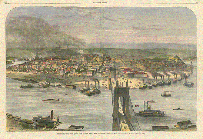 "Cincinnati, View from the Carlisle Hotel" Wood engraving publihed ca