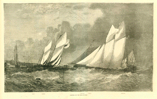 "The Schooner Match of the Royal Thames Yacht Club: The Gloriana Coming in First at Gravesend" Wood engraving published 1865.