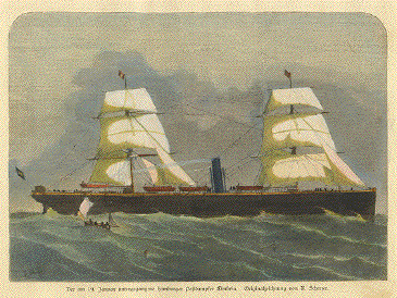Scherzer. Ca 1860. Modern hand coloring. 16.6 x 23.5 cm ( 6.5 x 9.2 ") $ 40.00 Order Nr. SAILING8066 |