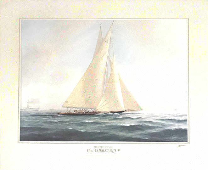 Marine Prints, Sail Boats, Yachts, International Yacht Races, The America's Cup Tim Thompson, British Marine Art specialist has devoted most of mistime and talent to Marine Art. His extraordinary paintings were commissioned by European Royalty, nobility, Captains and collectors of marine art. Many of his paintings were used for the publication of high class prints. He did he series by the name of ãThe America's Cup". The prints in glorious color were produced on the best available paper. Tim Thompson, the artist, (born 1951) signed each of them personally. Even notorious landlubbers would marvel at these elegant ships and yachts fighting the ocean, the stormy weather and each other in breathtaking races. We have some of this famous series for you to purchase, all of them hand-signed by Tim Thompson. Please enjoy this glamorous gallery of the utmost in quality with respect to Maritime Art. |