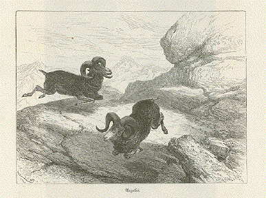 "Argalis" ( Himalayan mountain sheep ) Wood engraving 1877. Reverse side is printed. 11.7 x 16 cm ( 4.6 x 6.2 ") $ 20.00 Order Nr. SHEEP244177 |
