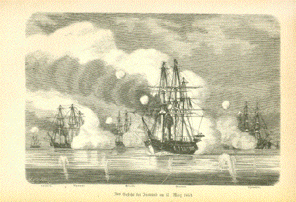 "Das Gefecht bei Jasmund am 17. Maerz 1864" Wood engraving published 1874. Light natural age toning. Image: 11.5 x 17.5 cm ( 4.5 x 6.8") $ 25.00 minus 40% Discount = $ 15.00 Order Nr. SHIP257319 |