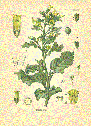 Left image: "Bauerntabak (Nicotina Rustica )" Right image: "Virginischer Tabak ( Nicotina Tabacum" ) Wood engravings published 1875. Reverse side is printed. Size of both images: 8.5 x 16.5 cm ( 3.3 x 6.4 ") $ 20.00 Order Nr. SMOKING242695 |