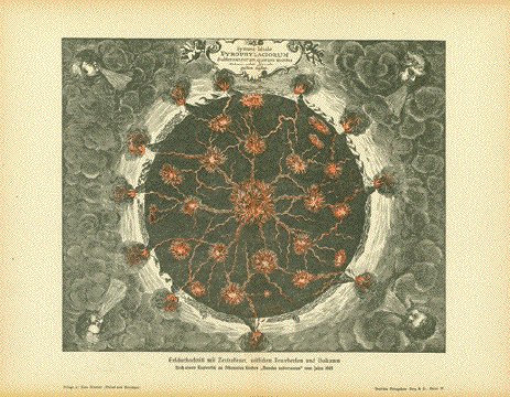"Das innere Feuer durchbricht die Erdrinde" ( the inner fire breaks through the earth's crust ) Wood engraving published 1902