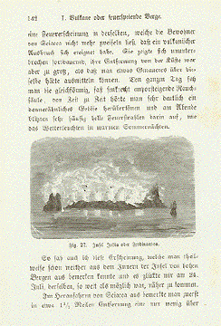 "Insel Julia oder Ferdinandea" Wood engraving on a page of text published 1871. Text continues on reverse side. This famous island ( now