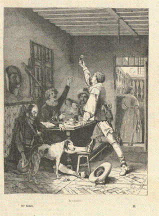 "In einer lothringischen Weinschenke" Wood engraving after L.